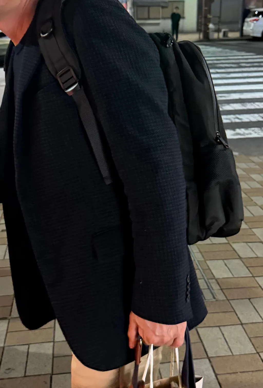 キャリーオンスーツケースでも使用される厚めのポリエステルの外生地を採用。立体的な形をしているため、ビジネススタイルに合わせることもできる。